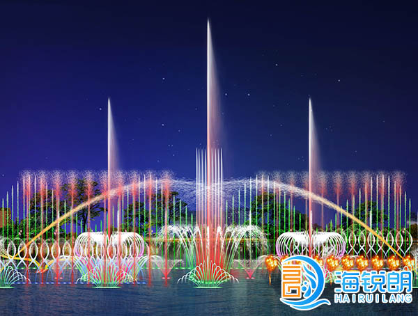 湖面彩色音樂數(shù)碼噴泉工程分控效果圖